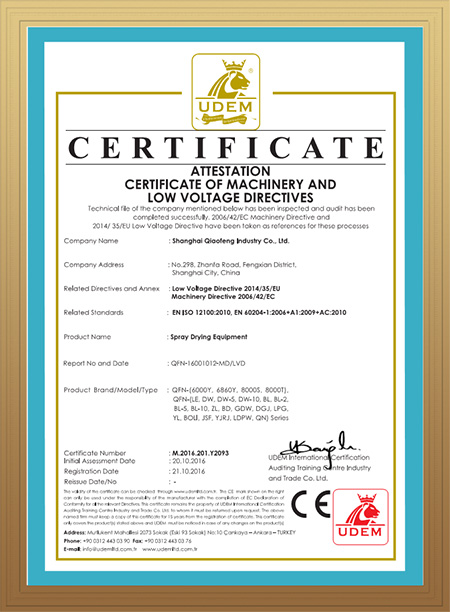 中國噴霧干燥行業(yè)證書