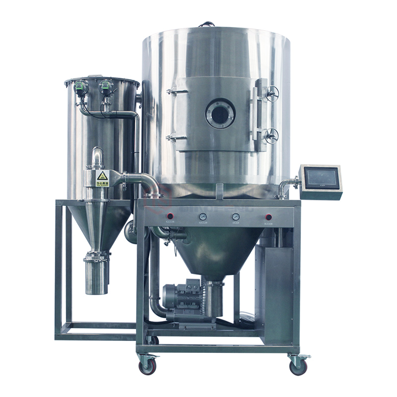 6) 生產(chǎn)過程簡化,智能操作觸摸屏程序控制方便,適宜實驗型,連續(xù)控制生產(chǎn)型請聯(lián)系我公司人員定制生產(chǎn)型噴霧干燥機。