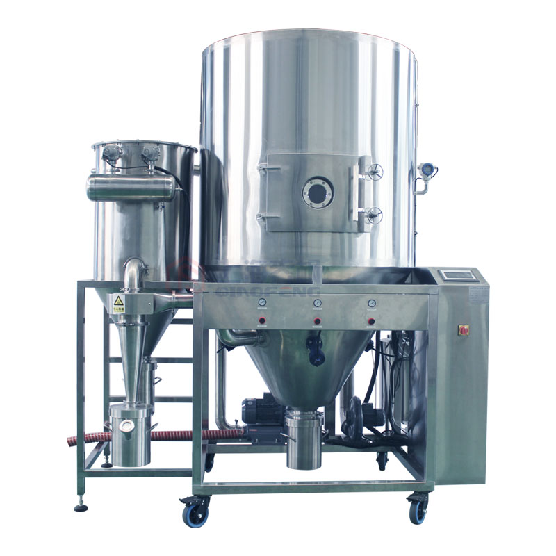 噴霧造粒干燥機是上海喬楓自主研發(fā)的一套造粒噴霧干燥機的。QFN-ZL系列造粒噴霧干燥機(喬楓**)專門的雙氣送液造粒噴頭,國內(nèi)一大創(chuàng)新,直接將均勻的球形霧滴通過均勻的熱量變成顆粒。